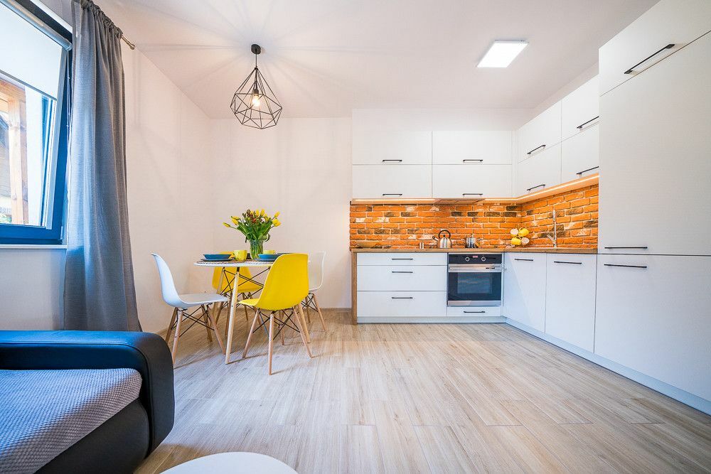 Funkcjonujący pensjonat składa się z czterech umeblowanych, apartamentów, każdy z nich posiada zabudowę kuchenną wraz ze sprzętem AGD,(lodówka, płyta indukcyjna, piekarnik, okap, zmywarka). W każdym apartamencie znajdzie się miejsce dla 6 osób.